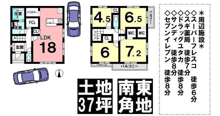 | 土地面積 | 122.84㎡(37.15坪) | 接道 | 東側幅 約4.4m 南側幅 約4.0m |